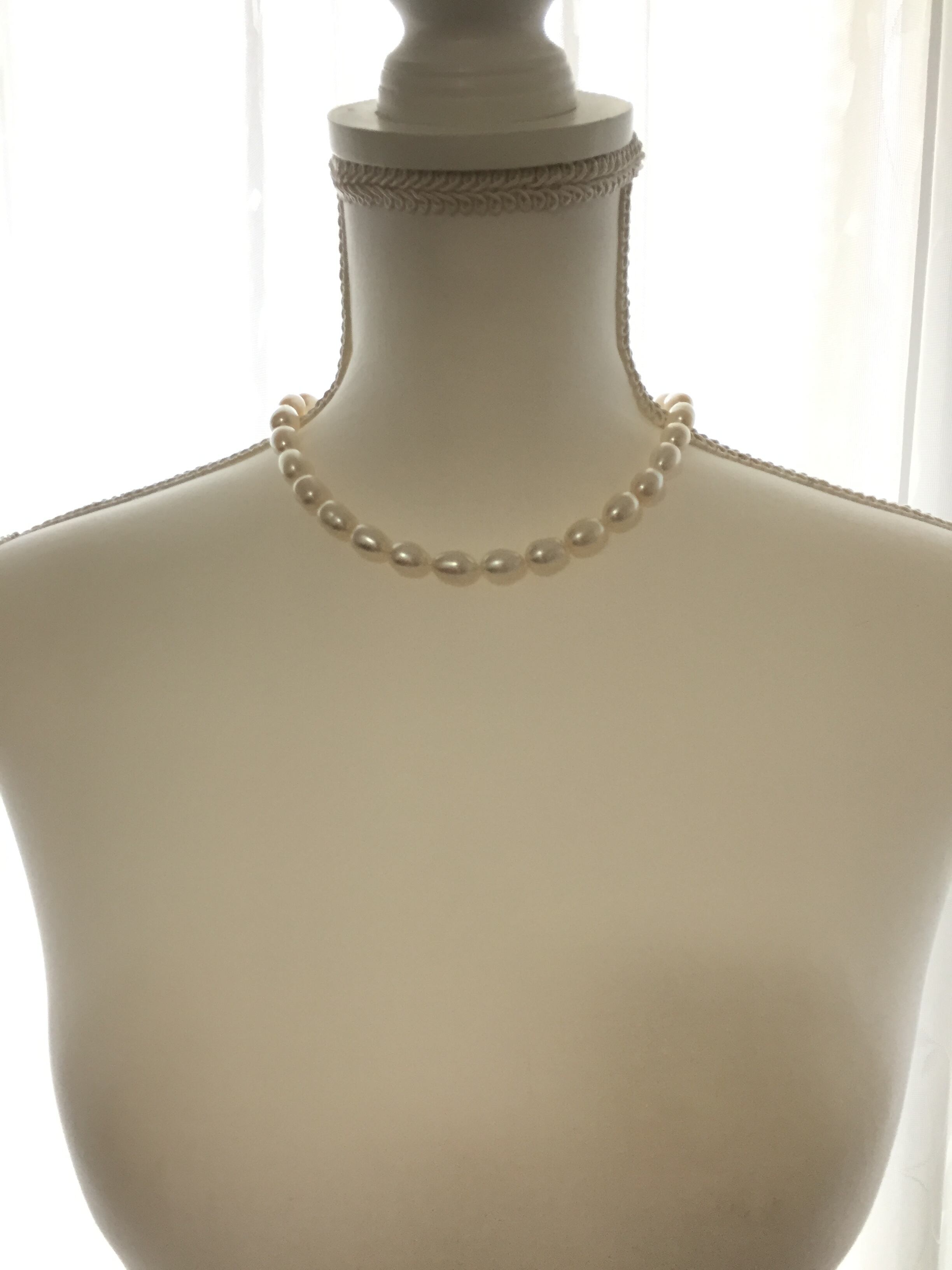 本物の淡水パール(ホワイト系大玉オ-バル約1.3×1.0cm)を贅沢に使用したネックレスです。(全長約44cm)
